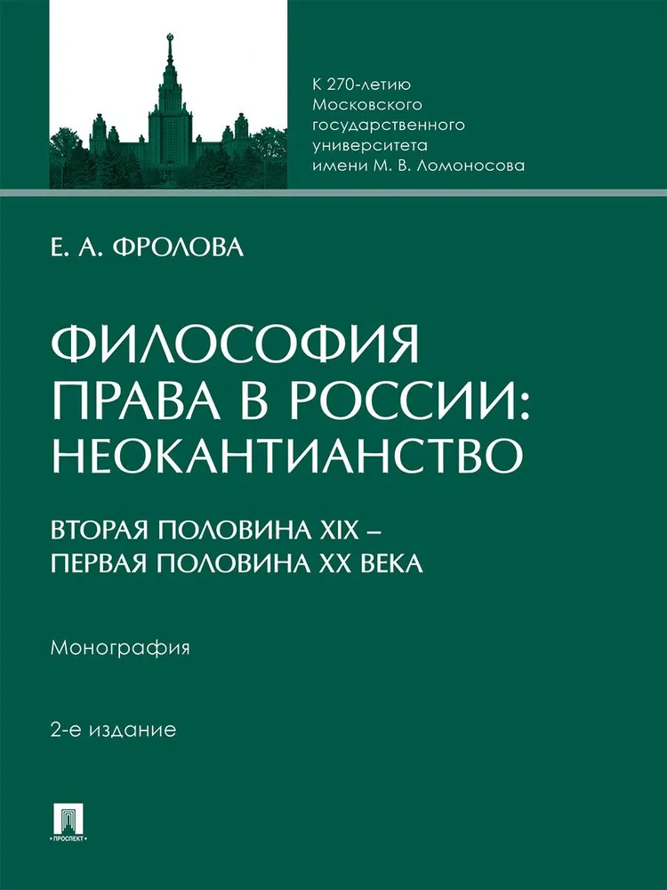Фролова Е. - Философия права в России: неокантианство (вторая половина XIX – первая половина XX века). (Серия: Философия права). М.: Проспект, 2025. 400 c. 9785392426829